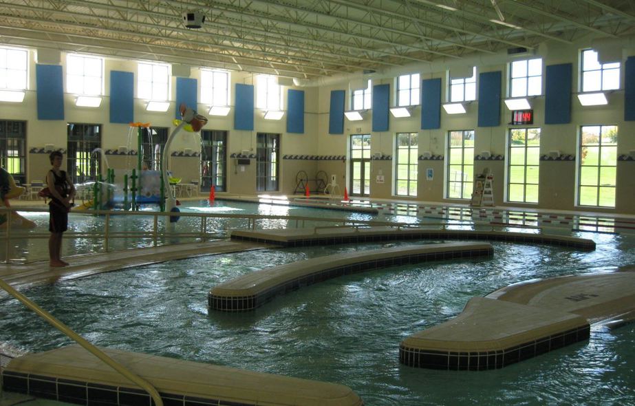 The Indoor Aquatic Center has a water-park like atmosphere. Included are a 228 foot long tube slide, interactive play areas, three lap lanes, and a current channel. A state of the art advanced ozone water treatment system requires the use of less chlorine, thus improving both water and air quality in the Aquatic Center. A Fitness Center equipped with the latest in cardiovascular and resistance machines along with a free weight area is another major feature of the building.